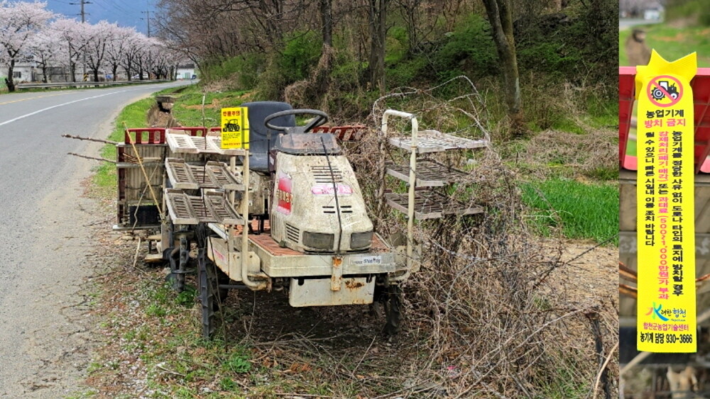 | ▲ 폐농기계가 도로변에 방치돼 있는 모습 [합천군 제공] |