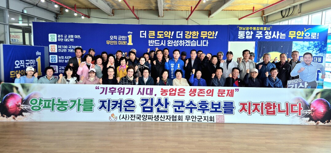 전남 무안지역 양파 생산 농가들이 더불어민주당 김산 무안군수 예비후보에 대한 공식 지지를 밝히며 본경선 투표를 앞두고 세 결집에 나섰다.