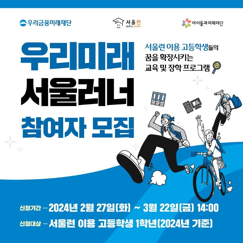 우리금융그룹 우리금융미래재단이 교육격차 해소와 미래인재 육성을 위한 '우리미래 서울러너' 프로그램 참여자를 모집한다고 27일 밝혔다.