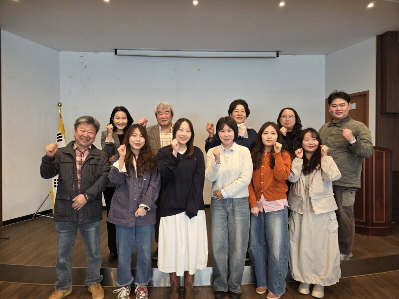 | ▲ '천년의 바람, 청년의 숨결' 최종 입주작가들이 단체촬영을 하고 있다. [사천시 제공] |