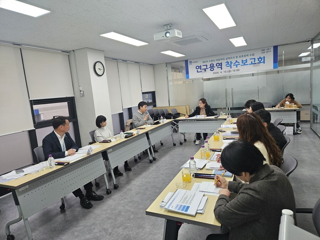 수원시는 지난 10일 아동학대공동대응센터 회의실에서 '제2차 수원시 아동학대 실태조사 및 보호정책 수립' 연구용역 착수보고회를 열어 연구 방향과 주요 과업을 공유했다고 12일 밝혔다.