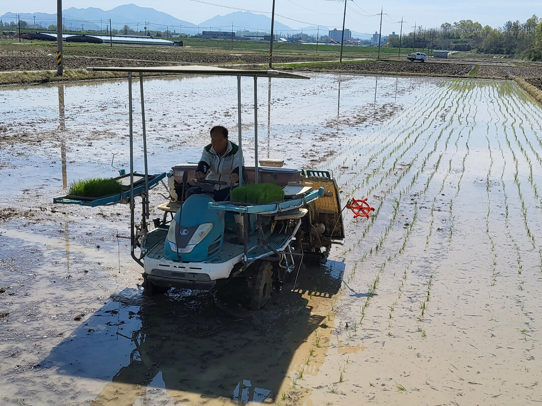 이번 모내기에서 남지읍 쌀전업농 회원인 임현섭 농가는 약 1300평 규모의 논에 기계이앙 방식을 적용해 '밀키퀸' 품종을 식재했다.