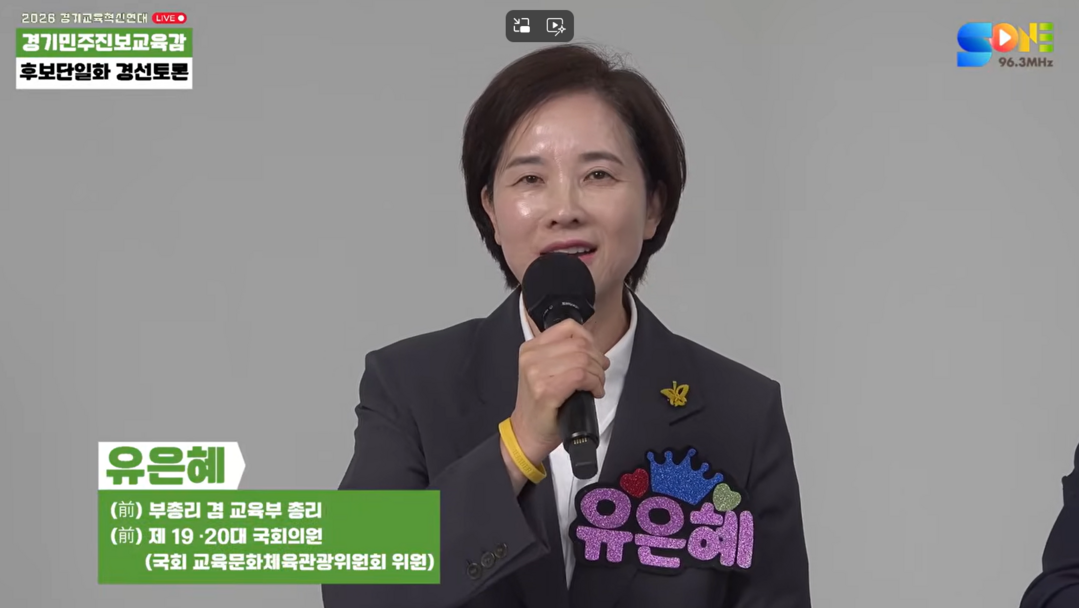 | ▲ 유은혜 경기도 교육감 예비후보. [수원공동체라디오 경기교육혁신연대 후보 정책토론회 방송 화면 캡처] |