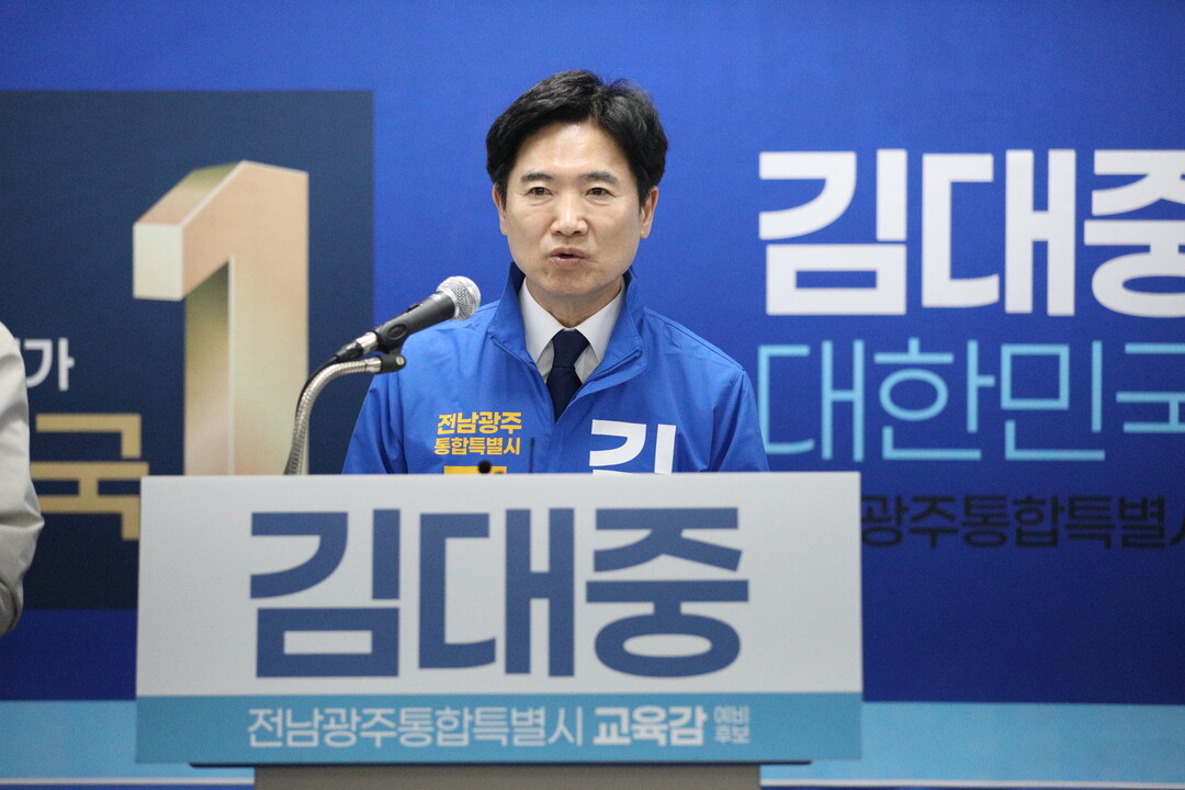 김대중 후보는 "전남광주 통합은 지역의 운명을 바꿀 수 있는 기회"라며 "대한민국 교육을 선도하고 세계 속 K-교육으로 도약하는 길에 앞장서겠다"고 말했다.