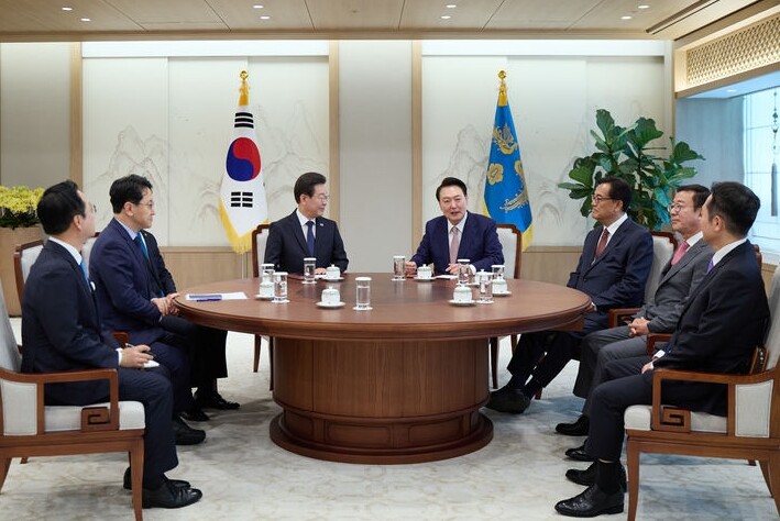 윤석열 대통령과 더불어민주당 이재명 대표는 29일 서울 용산 대통령실에서 회담을 갖고 정국 현안을 논의했다.